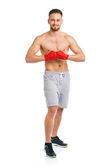 Sportowe atrakcyjnego mężczyzny nosić Bandaże bokserskie z butelka wody