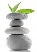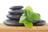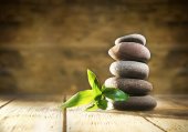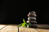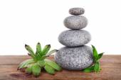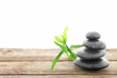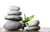 Stos kamieni spa na powierzchni desek na białym tle