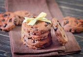 Smaczne ciasteczka, na drewnianych tło kolor