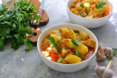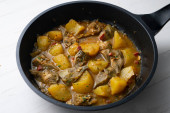 Mątwa duszona z ziemniakami. Tradycyjny hiszpański tapa przepis.