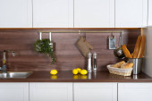 Zdjęcie "Współczesna kuchnia tło z naczynia kuchenne stojące o" może być wykorzystywane do celów osobistych i komercyjnych zgodnie z warunkami zakupionej licencji Royalty-free. Obraz jest dostępny do pobrania w jakości wysokiej rozdzielczości do 5760x3840.