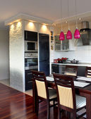 przestronne biały otwarta kuchnia z barem śniadaniowym