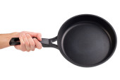 Ręki trzymającej na patelni