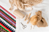 srebrny laptop z żółtymi kwiatami w beżowym woreczku