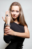 młody atrakcyjny blond dziewczyna pozuje na zewnątrz