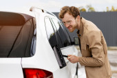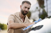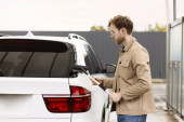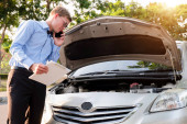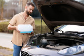 Zdjęcie "Poważny człowiek robiący diagnostyczne auto, stojący przy otwartym kapturze, rozmawiający przez telefon komórkowy. Naprawa samochodów, koncepcja" może być wykorzystywane do celów osobistych i komercyjnych zgodnie z warunkami zakupionej licencji Royalty-free. Obraz jest dostępny do pobrania w jakości wysokiej rozdzielczości do 5760x3840.