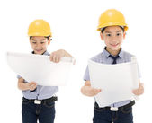 Inżynier budowy dziecko azjatyckie sprzęt gospodarstwa