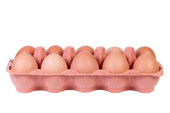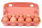 Jaja kurze w pudełku kartonowym izolowane na białym tle.