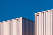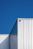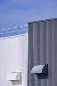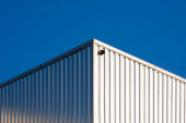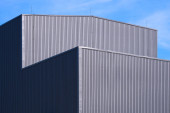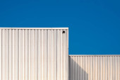 Zdjęcie "Światło słoneczne i cień na powierzchni nowoczesnej białej i szarej falistej budynku fabryki metalu ze stalowym ogrodzeniem na dachu w perspektywie widok z boku" może być wykorzystywane do celów osobistych i komercyjnych zgodnie z warunkami zakupionej licencji Royalty-free. Obraz jest dostępny do pobrania w jakości wysokiej rozdzielczości do 5760x3840.