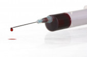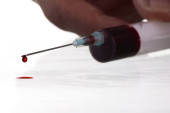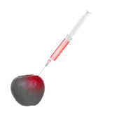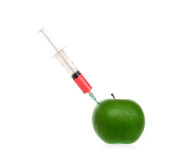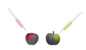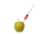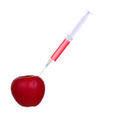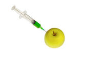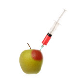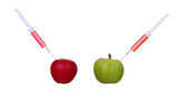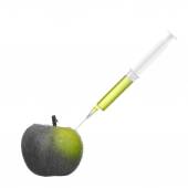Jabłko świeże ze strzykawki na białym tle, koncepcja terapii