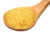 zupa z kurczaka makaron w drewnianej chochli izolowane na białym tle