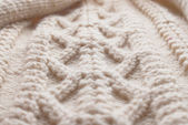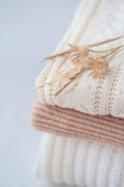 Pile dzianin zimowych swetrów z girlandami na białym tle