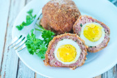wielkanocnym posiłkiem, pieczeń chleb z jajka na twardo wewnątrz