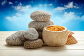 Zdjęcie "spa still life - kamienie i sól do kąpieli" może być wykorzystywane do celów osobistych i komercyjnych zgodnie z warunkami zakupionej licencji Royalty-free. Obraz jest dostępny do pobrania w jakości wysokiej rozdzielczości do 5760x3840.