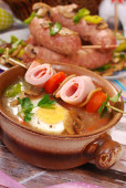 Tradycyjne potrawy wielkanocne na wiejski Stół drewniany