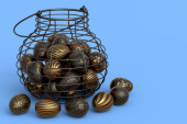 Zdjęcie "Luksusowe złote jaja w metalowym koszu lub tekturze papierowej izolowane na białym tle. 3d renderowania koncepcji Wielkanoc lub jaj kurzych na omlet lub jajecznicę smażone jajko na śniadanie rano" może być wykorzystywane do celów osobistych i komercyjnych zgodnie z warunkami zakupionej licencji Royalty-free. Obraz jest dostępny do pobrania w jakości wysokiej rozdzielczości do 5760x3840.