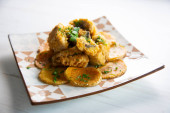 Papas bravas, to typowe przygotowanie barów w Hiszpanii składające się z ziemniaków pokrojonych w duże kostki, smażonych na oliwie z oliwek i przyprawionych brawą salsa, która jest pikantnym sosem.