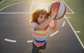 Chłopiec przygotowujący się do strzelaniny. Piłka do kosza dla dzieci