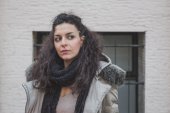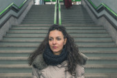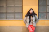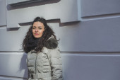 Piękna młoda brunetka pozowanie na ulicach miasta