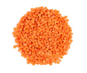 Czerwona soczewica izolowane na białym tle w formacie kwadratowym