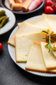 pieczony ser miękki Brie lub pomidor Camembert, czosnek i zioła posiłek przekąska żywności na stole kopia przestrzeń żywności tło rustykalny widok z góry