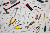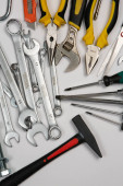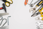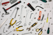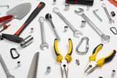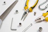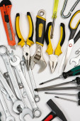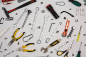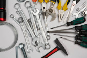 Zdjęcie "Zestaw narzędzi do naprawy w przypadku na białym tle. Różne narzędzia robocze lub budowlane. Klucze, szczypce, śrubokręt. Widok z góry" może być wykorzystywane do celów osobistych i komercyjnych zgodnie z warunkami zakupionej licencji Royalty-free. Obraz jest dostępny do pobrania w jakości wysokiej rozdzielczości do 5760x3840.