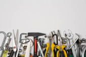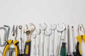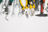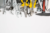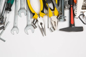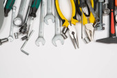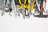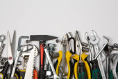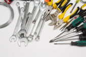 Zdjęcie "Zestaw narzędzi do naprawy w przypadku na białym tle. Różne narzędzia robocze lub budowlane. Klucze, szczypce, śrubokręt. Widok z góry" może być wykorzystywane do celów osobistych i komercyjnych zgodnie z warunkami zakupionej licencji Royalty-free. Obraz jest dostępny do pobrania w jakości wysokiej rozdzielczości do 5760x3840.