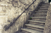 Zdjęcie "Pionowy obraz starych, starzejących się, zniszczonych, betonowych schodów zewnętrznych z malowaną ceglaną ścianą na boki. Wysokiej jakości zdjęcie" może być wykorzystywane do celów osobistych i komercyjnych zgodnie z warunkami zakupionej licencji Royalty-free. Obraz jest dostępny do pobrania w jakości wysokiej rozdzielczości do 5760x3840.