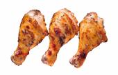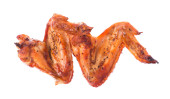 Grillowane paluszki z kurczaka na drewnianej desce do krojenia. Izolacja na białym tle