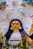 Bogini Durga z tradycyjnym spojrzeniem z bliska na South Kalkuta Durga Puja, Durga Puja Idol, Największy indyjski festiwal Navratri w Indiach