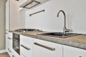 Zdjęcie "kuchnia z czarno-białymi płytkami na plecach, blaty i zlewozmywak w nim" może być wykorzystywane do celów osobistych i komercyjnych zgodnie z warunkami zakupionej licencji Royalty-free. Obraz jest dostępny do pobrania w jakości wysokiej rozdzielczości do 5760x3840.