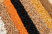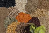 Zdrowe jedzenie wegetariańska koncepcja żywności wegańskiej. Różne zboża ekologiczne, warzywa, pełnoziarniste, widok z góry