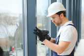 Zdjęcie "człowiek mocuj metalową ramę profilową do ściany grodzi dramaturgicznej." może być wykorzystywane do celów osobistych i komercyjnych zgodnie z warunkami zakupionej licencji Royalty-free. Obraz jest dostępny do pobrania w jakości wysokiej rozdzielczości do 5760x3840.