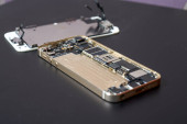 Wewnętrzne i komponenty zdemontowanego smartfona
