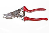 Czerwony ogród sekator izolowany na białym tle