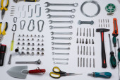 Zdjęcie "Zestaw narzędzi do naprawy w przypadku na białym tle. Różne narzędzia robocze lub budowlane. Klucze, szczypce, śrubokręt. Widok z góry" może być wykorzystywane do celów osobistych i komercyjnych zgodnie z warunkami zakupionej licencji Royalty-free. Obraz jest dostępny do pobrania w jakości wysokiej rozdzielczości do 5760x3840.