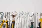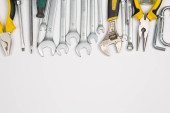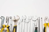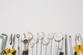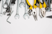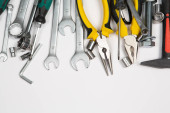 Zdjęcie "Zestaw narzędzi do naprawy w przypadku na białym tle. Różne narzędzia robocze lub budowlane. Klucze, szczypce, śrubokręt. Widok z góry" może być wykorzystywane do celów osobistych i komercyjnych zgodnie z warunkami zakupionej licencji Royalty-free. Obraz jest dostępny do pobrania w jakości wysokiej rozdzielczości do 5760x3840.