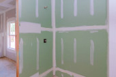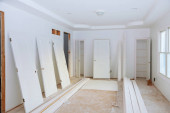 Zdjęcie "Istnieje nowo wybudowany dom, który w trakcie tynkowania gipsowo-kartonowego gotowy do malowania." może być wykorzystywane do celów osobistych i komercyjnych zgodnie z warunkami zakupionej licencji Royalty-free. Obraz jest dostępny do pobrania w jakości wysokiej rozdzielczości do 5760x3840.