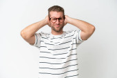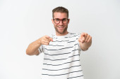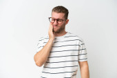 młody przystojny biały mężczyzna odizolowany na biały tło śmiech