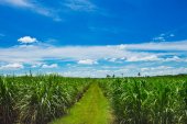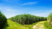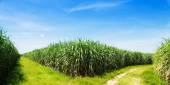 pola trzciny cukrowej i drogi biały obłok w Tajlandii