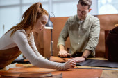 Zdjęcie "przyjemna ruda kobieta z kucykiem w pomarańczowym fartuchu olejki portfel, torebka, zbliżenie zdjęcie. niewyraźna nowa wiedza" może być wykorzystywane do celów osobistych i komercyjnych zgodnie z warunkami zakupionej licencji Royalty-free. Obraz jest dostępny do pobrania w jakości wysokiej rozdzielczości do 5760x3840.