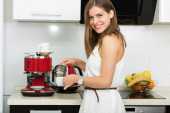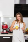 młody biały w ciąży kobieta gotowanie a zdrowy obiad