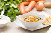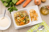 Zdjęcie "Zupa jarzynowa w płycie" może być wykorzystywane do celów osobistych i komercyjnych zgodnie z warunkami zakupionej licencji Royalty-free. Obraz jest dostępny do pobrania w jakości wysokiej rozdzielczości do 5760x3840.