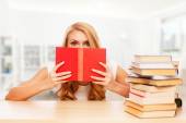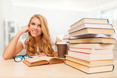Młody student czytanie książek