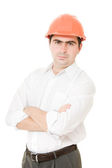 interesu w kasku na białym tle.