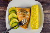 pieczony top łososia z pieprzem i bazylią plus ryż i warzywa