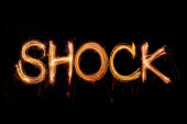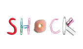 Szokujące słowo, kolaż z wycinków z gazet i pism na czerwonym tle