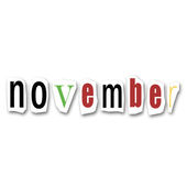 Listopad słowo z wyciętego magazynu kolorowe litery na lekkim tle