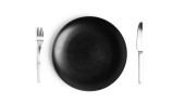 Zdjęcie "Czarna, pusta płyta ceramiczna z widelcem i nożem, widok z boku. Izolacja na białym tle" może być wykorzystywane do celów osobistych i komercyjnych zgodnie z warunkami zakupionej licencji Royalty-free. Obraz jest dostępny do pobrania w jakości wysokiej rozdzielczości do 5760x3840.