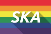 Ska słowo z wyciętego magazynu kolorowe litery na jasnym tle